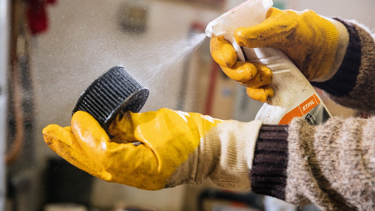 • Om het milieu te beschermen, mag je alleen biologisch afbreekbare middelen gebruiken zoals STIHL CS 100 steen- en gevelreiniger.